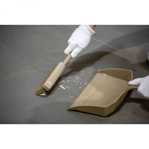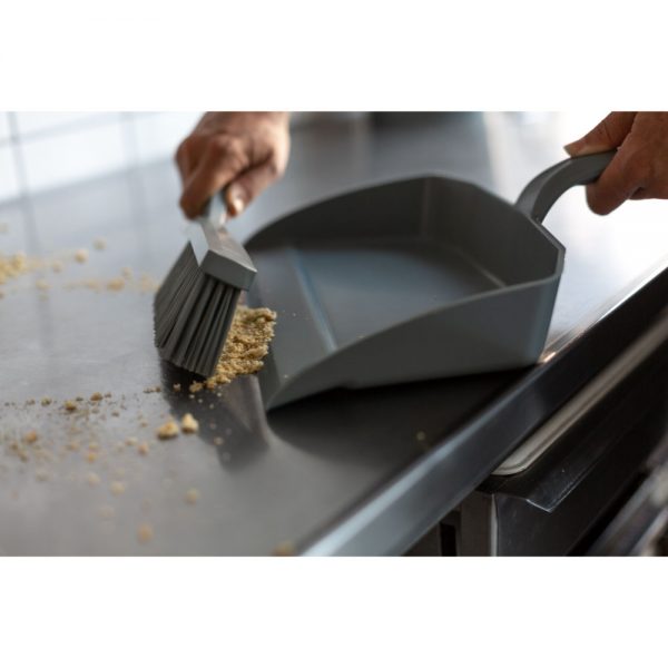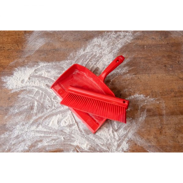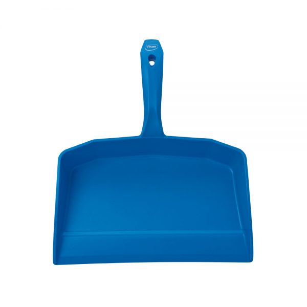 This dustpan has a sharp edge so that food particles are efficiently brushes into it. The neck joint is very robust and can withstand strong downward pressure. It is used in all kinds of industries either on the floor or tables.