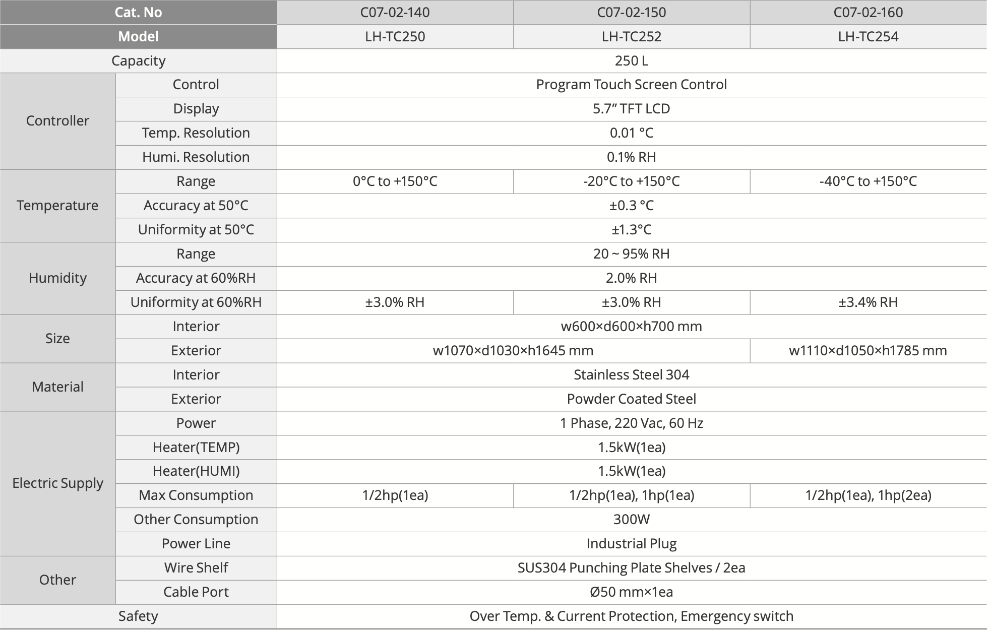 Sıcaklık ve Nem Odası, 250 Litre