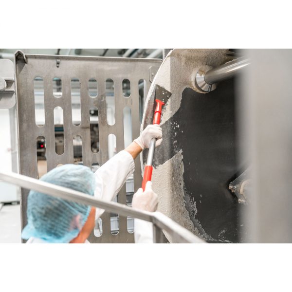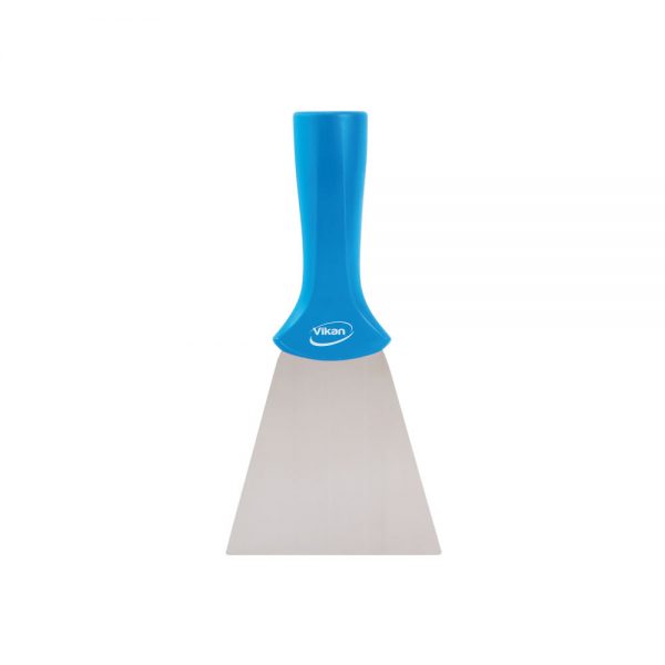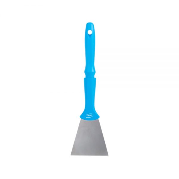 Great for removing hard-to-reach sticky deposits and dried or burnt-on foods or ingredients, this Scraper features a stainless flex steel blade with protective rounded corners, a high-strength attachment, and a threaded handle that fits any Vikan colour-coded extension handle. While not intended for floor cleaning proper, this product can be used to remove lighter soils on floors.