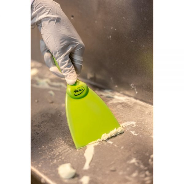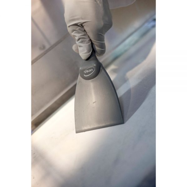Narrow hand scraper allows access to small areas and rounded equipment like large bowls. It is useful for loosening stubbon dirt i.e. pastry, chocolate, burnt food, etc. The polypropylene construction reduces the possibility of scratching sensitive surfaces.