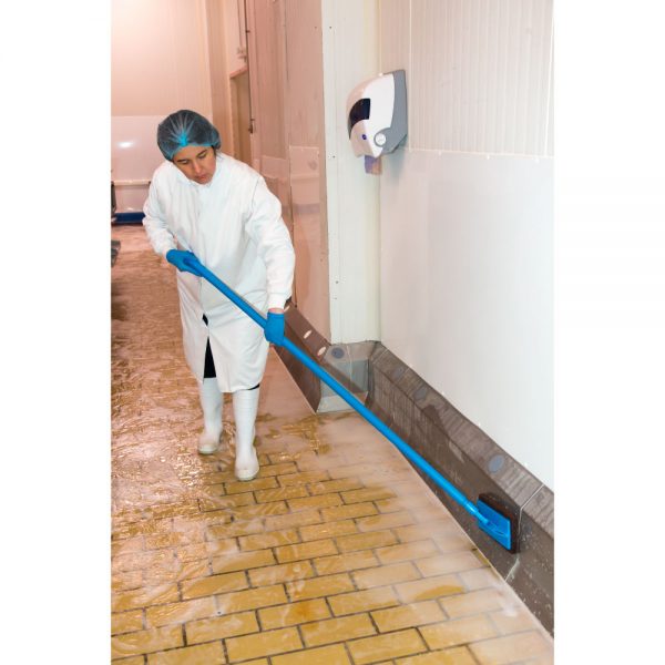 An excellent tool for cleaning walls and tanks. Often used to scrub stubborn dirt e.g. pastry, meat, sticky glucose type ingredients. The swivel neck allows the operator to clean underneath equipment. It is designed to hold a scouring pad of varying roughness. The clip mechanism is stainless steel and is very robust. This mechanism prevents the pad from falling off once heavy with water.